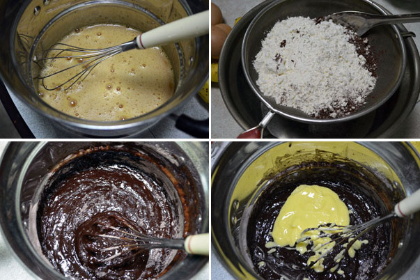 麵粉+泡打粉+可可粉過篩 打入打發的蛋糊